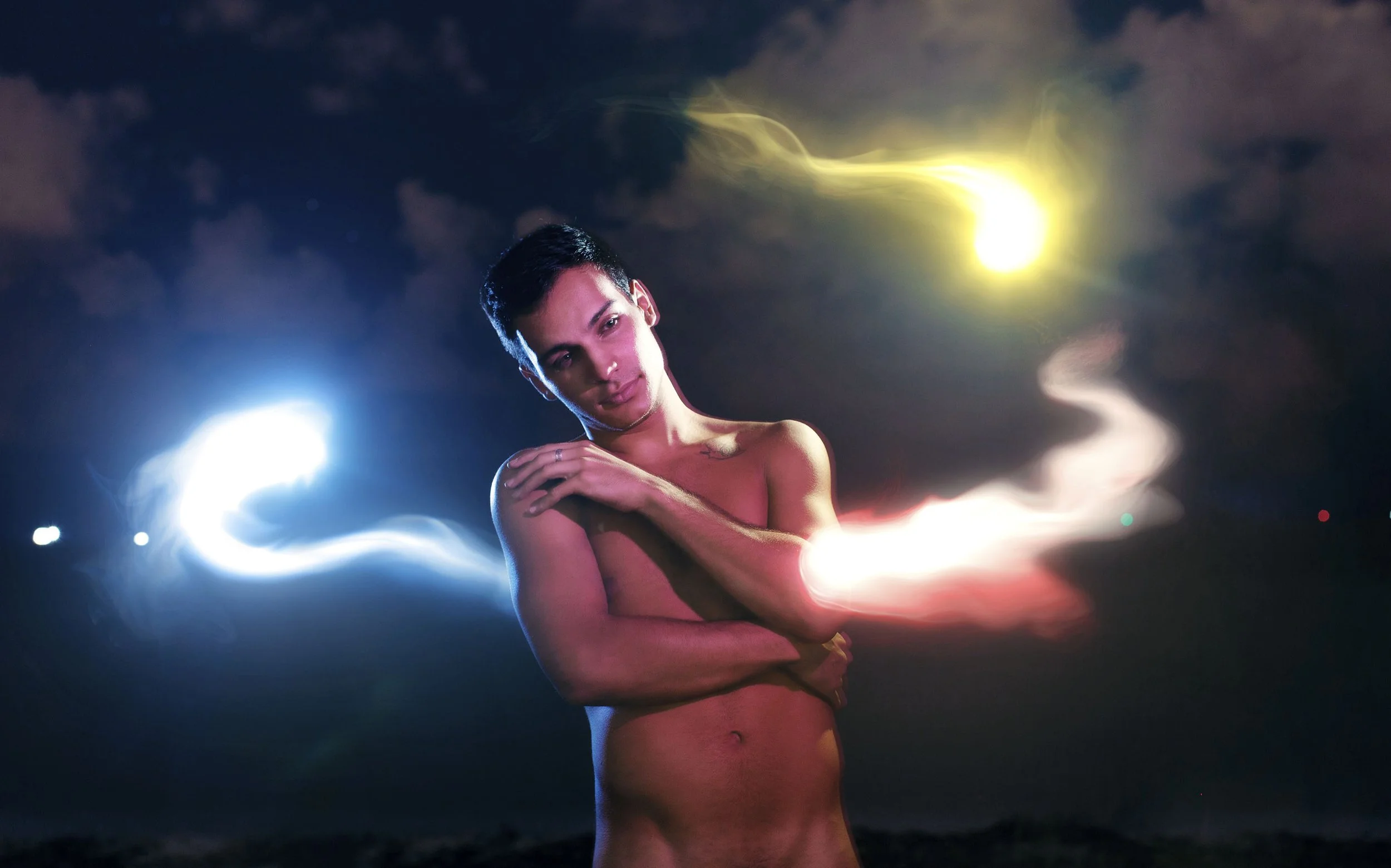 By the time 2017 rolled around, a couple years had passed since my photo-a-day endeavor, and I was craving another project to anchor my art. From that spawned Within You and Without You, an expansion of a dazzling, abstract motif I had already used a couple of times in previous works. Resembling souls, fairies, or a manifestation of one’s own thoughts, these flowy light trails gave me plenty of freedom to explore different concepts like fate and emotions, and also to put more focus on the form and expressions of the figure itself.