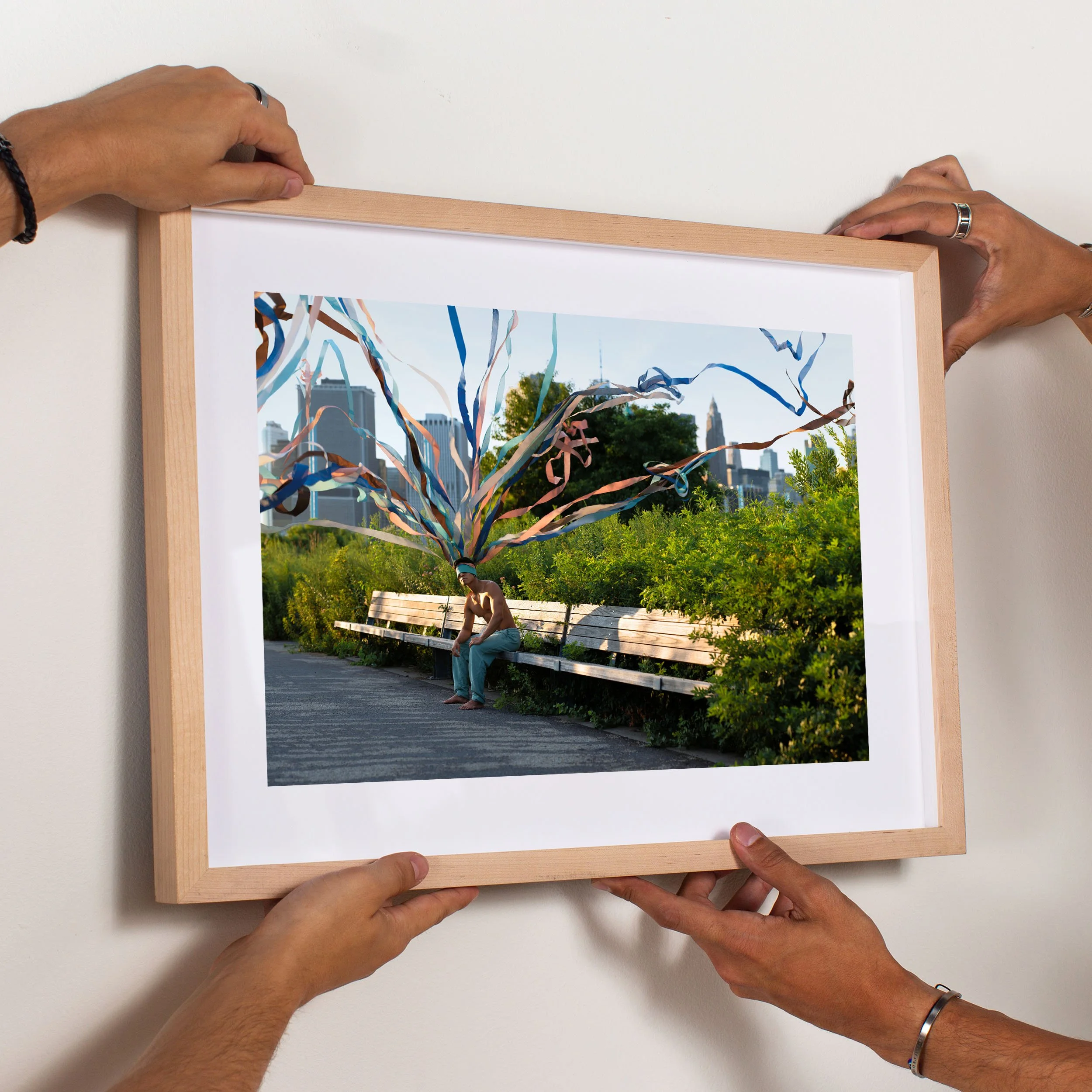 Inspired by the vastness of the cosmos, the surreal portraits in the Beyond The Observatory Roof Collection will take you out of this world. The male figure transforms into the new frontier as these prints take you floating away into galaxies beyond. Bring the magic home by selecting your favorite print and matching frame.